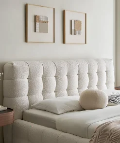 Cream Puff Boucle Bed Contemporary Upholstered Platform Bed Frame for Bedroom Comfort and Style – feow